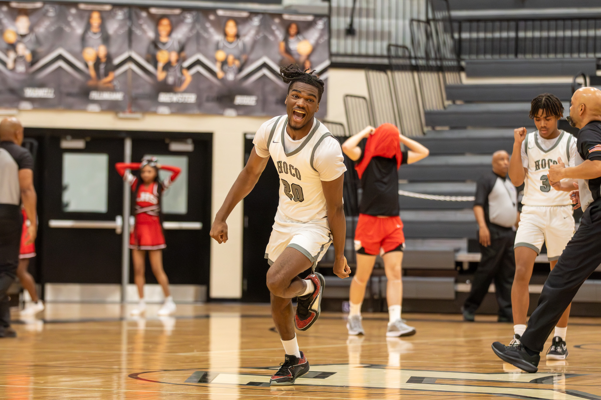 Amari Adams is all smiles after Loganville’s tying shot fell off of the rim at the buzzer. HoCo advanced to the Sweet 16 for the first time under Buddy Bivins with the win over the Red Devils at a HoCo vs Loganville game on Wednesday, Feb. 19. (Clay Brown/HHJ)