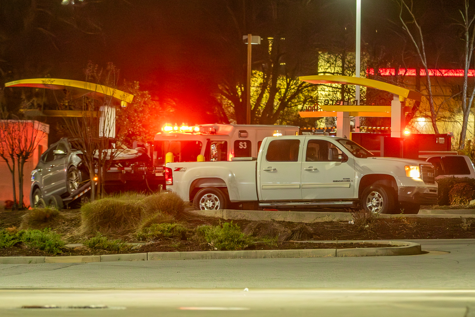 Crews clean up the aftermath of a vehicle fire in the drive-thru lane of a McDonalds on Russell Parkway on Wednesday, Feb. 26. (Clay Brown/HHJ)