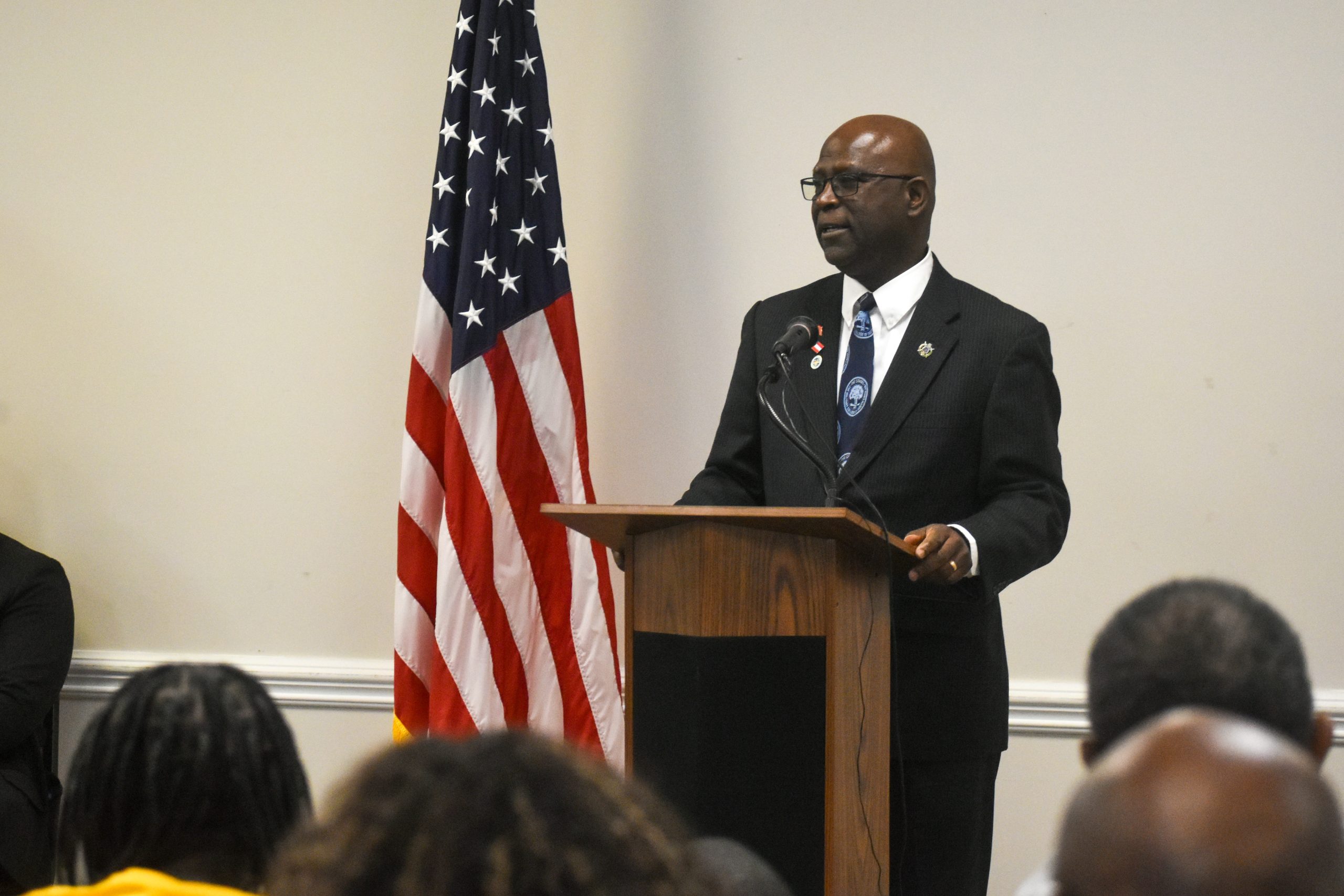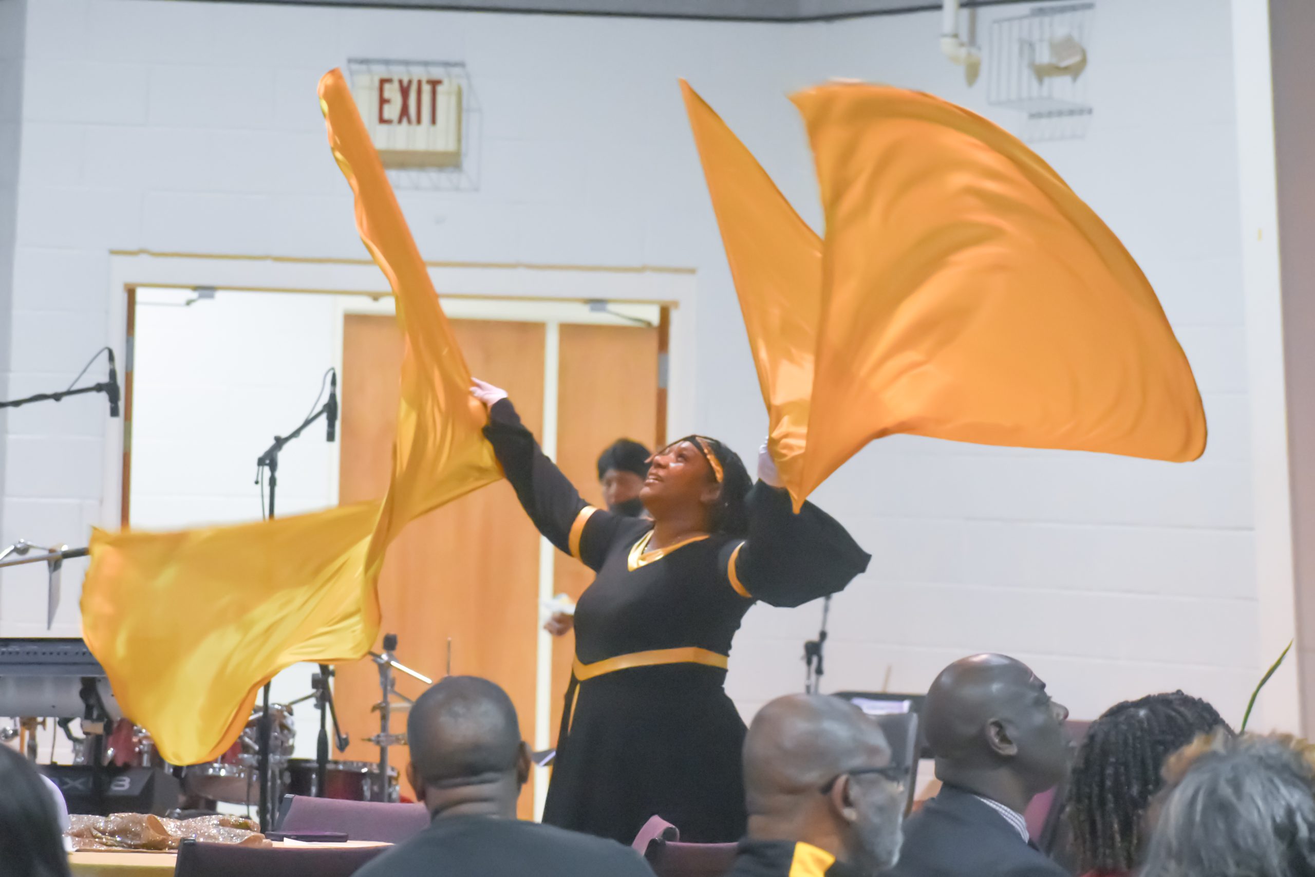 Alisa Appling performs a flag dance while Shaterria Zaniya sings “Black Butterfly” at a “Unity in our Community” Breakfast Saturday, Jan. 18. (Brieanna Smith/HHJ)