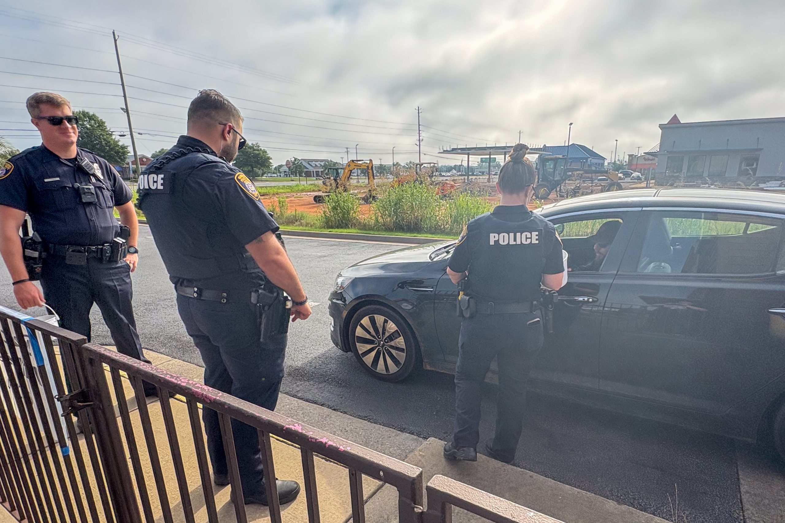 Officers take a donation for Georgia Special Olympics during Cops on Donut Shops Friday, June 6. (Brieanna Smith/HHJ)