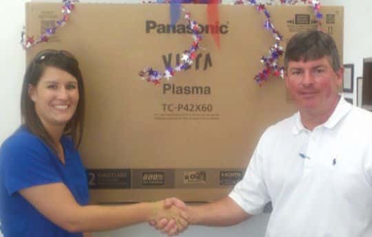 At the Freedom Fireworks, supporting sponsor Walker Insurance Agency announced Ashley Colvin from Oglethorpe as the winner of the 42-inch HD TV giveaway. Ashley’s name was picked in a random Facebook generated contest on June 30. Larry Walker with Walker Insurance Agency located in Perry sponsored the Freedom Fireworks event. “We were glad to be a part of bringing the fireworks back to Perry. The Independence Parade and Freedom Fireworks were a big success. The Perry Area Chamber did a wonderful job orchestrating these events. We enjoyed having Casey Hayward sign autographs in our tent. I was impressed with how generous he was with his time. He seemed to enjoy and appreciate the fans, and he was very courteous. Congratulations to Ashley on winning the television.”