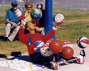 Tanya Crevier, who tours the world and entertains at NBA games juggling, dribbling and spinning as many as 10 basketballs at one time. She is a four-time letter winner from South Dakota State University.