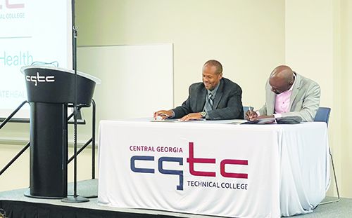 The ceremonial signing took place on the college’s Warner Robins campus. College President Dr. Ivan Allen and Atrium Health President Delvecchio Finley signed their agreement in front of other attendees to represent their new partnership.