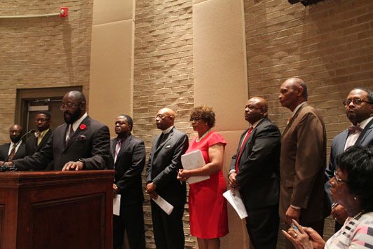 A group of local pastors came to the Warner Robins City Council meeting Monday to discuss rebuilding bridges to municipal accountability, transparency and efficiency with Mayor Randy Toms and Council members. Bishop Harvey Bee of Christian Fellowship Church spoke on behalf of the group.