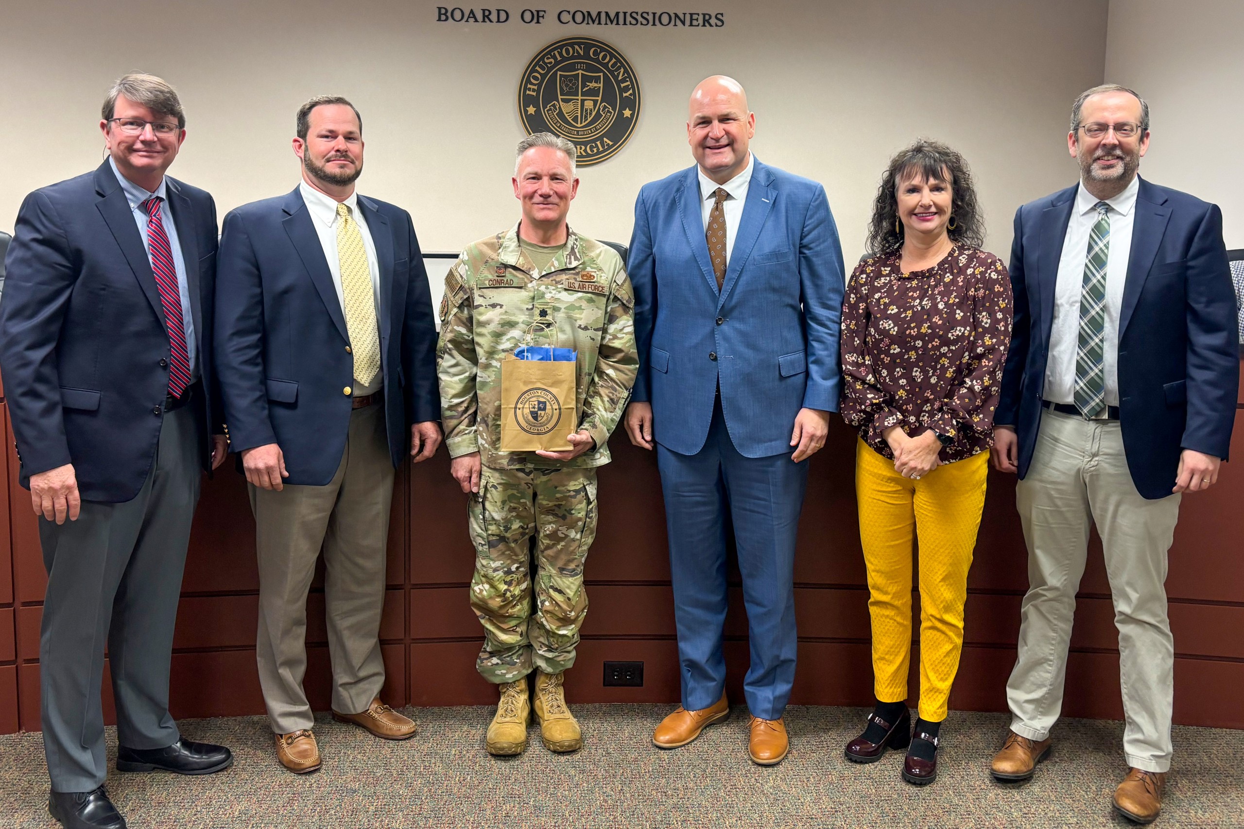 PERRY— In their first meeting of March, the Houston County Commissioners welcomed Lt. Col. Joel Conrad, Commander of the 116th Aircraft Maintenance Squadron on Robins Air Force Base.