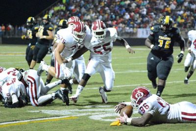 Corbin lost another snap (plus his helmet), but Trojan lineman Fletcher Hooks had the football and at 7:03 helped put Warner Robins down 14-0.