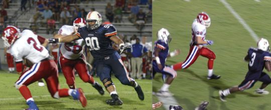 Ivory dumped a pass on to Smith on 2nd-and-21 to get to the VH 49, the quarterback feeling pressure on his last two passes from big stand-up end Cortez Broughton. Arlen Taylor also gave Bruce a key stop for short gain on a ball caught by Weaver.
