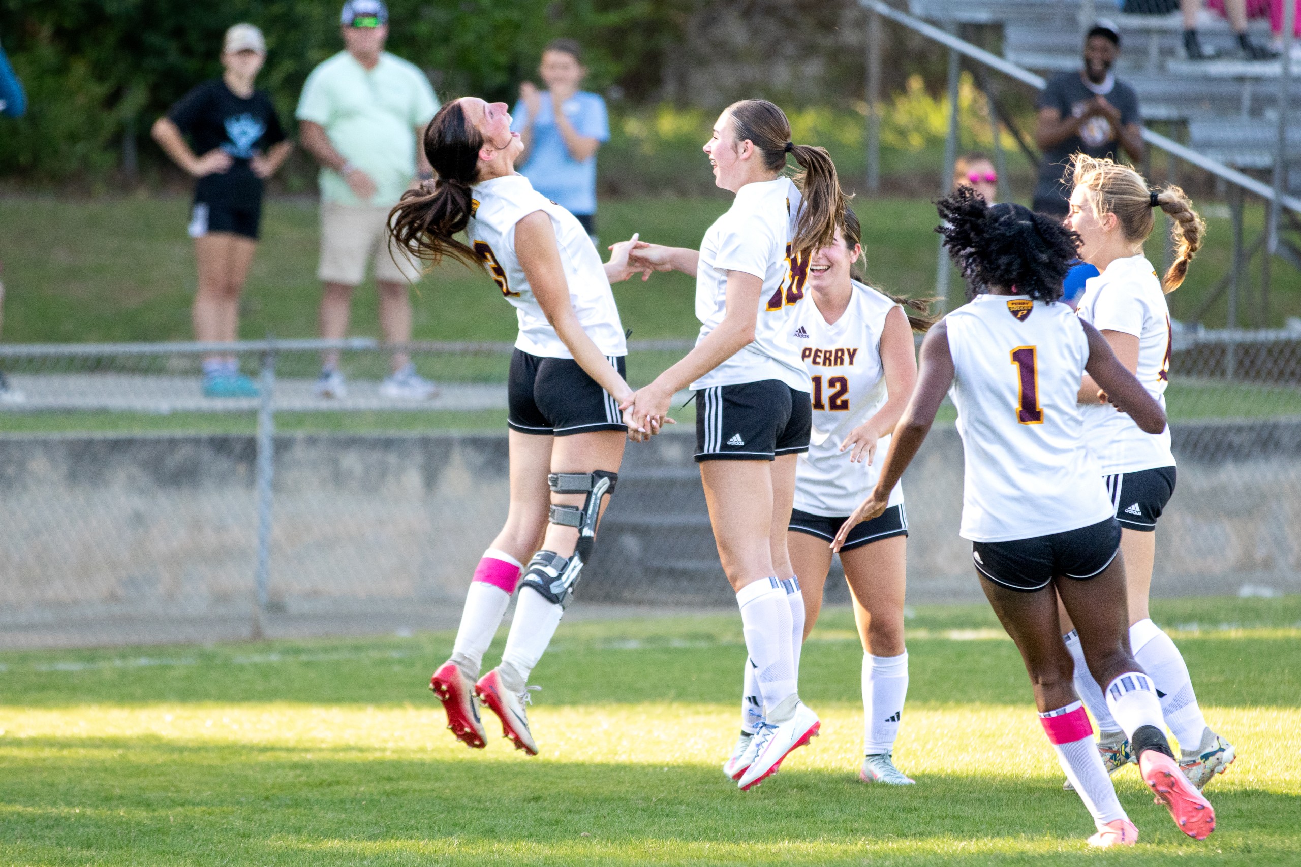 Ansley Bigler’s second-half long shot to put the Lady Panthers ahead 4-0 drew the most celebratory reaction from the team — Perry scored three more goals before the end for another shutout victory.