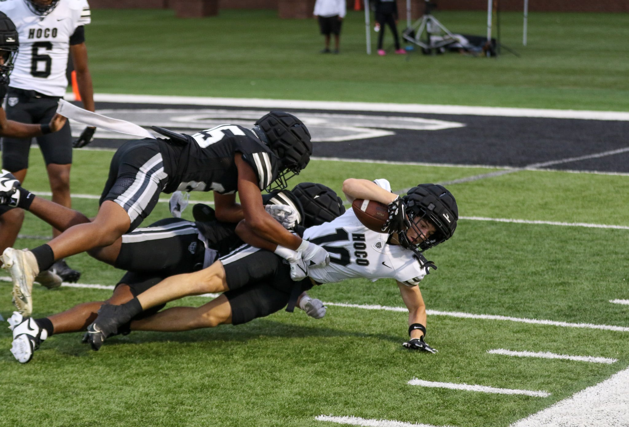 While the defensive line battles with the offensive line, HoCo’s outside linebackers help bring more pressure on the quarterback.