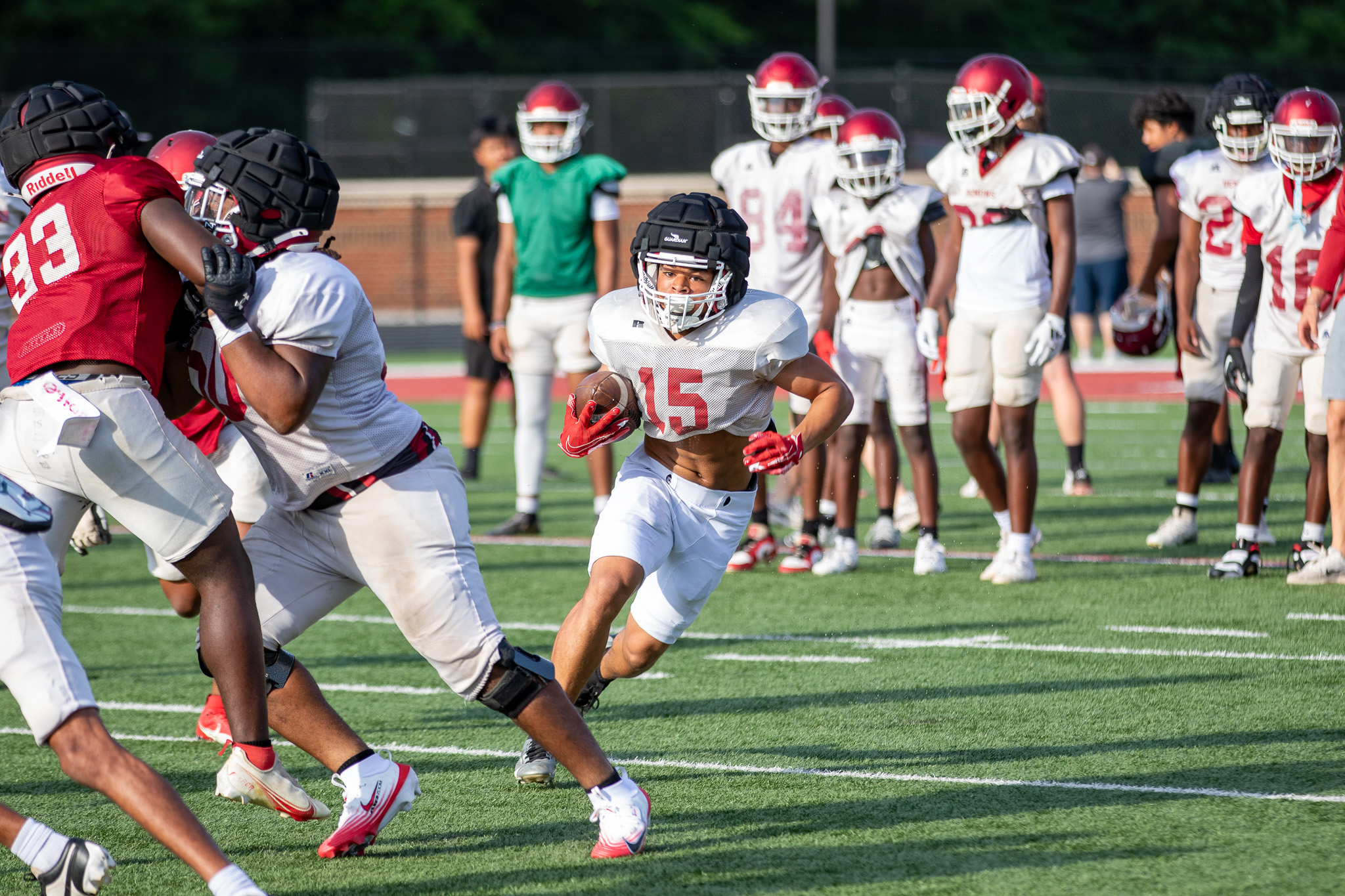 The receiver room is one of the more familiar groups from last season, with returners like senior Ezra Goings and sophomore X’Zavier Cannon.