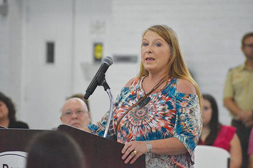 Janet Shoenfelt, the person that collapsed at the gym, spoke at the meeting, saying that some doctors she consulted with following the incident agreed that she “was almost a miracle.”