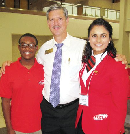 Houston County High students David Jefferson and Shivani Dhir recently spent time with Dwayne Hobbs, program manager for Career, Technical and Agricultural Education learning about their role on the Family, Career and Community Leaders of America (FCCLA) State Board of Directors. Through the training, the students were encouraged to use available resources and to have long-term as well as short-term goals. Jefferson serves as FCCLA’s National Liaison Officer and Dhir is the State FCCLA President for 2013-2014. Their advisers are Lynsey Singleton and Jane Cooper.