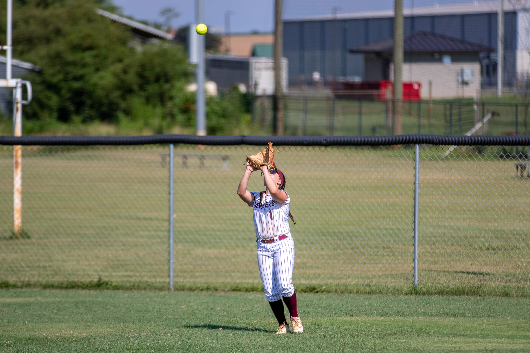 Veterans center fielder Rayven Hodridge calls ball as she settles under a fly ball in the outfield. (Clay Brown/HHJ)