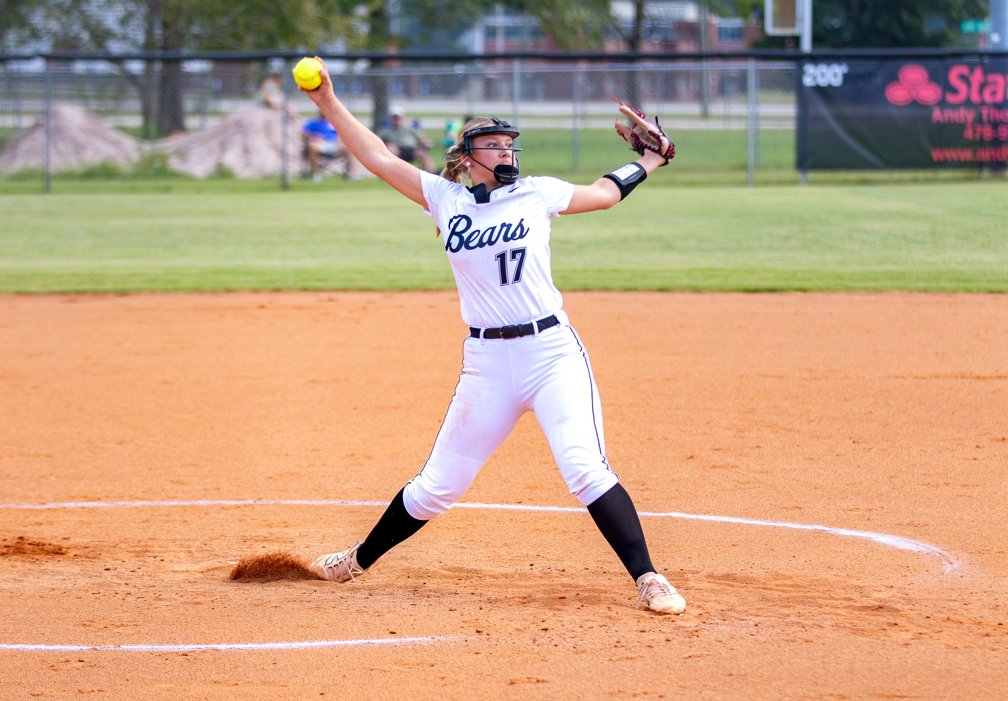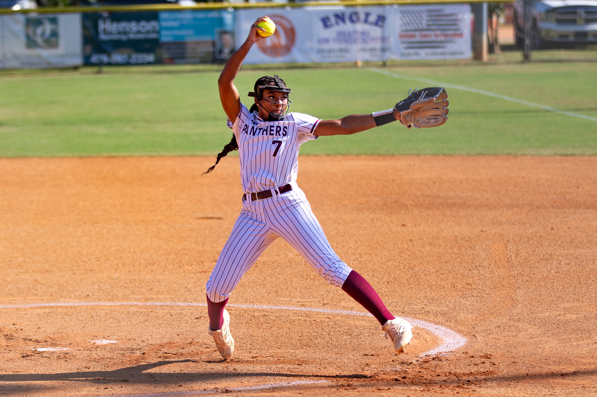 Leanne Butts throws from the circle in the fourth inning of Warner Robins’ game against Northside in Part 2 of the Crosstown Showdown. (Michael Hardison Jr/HHJ)