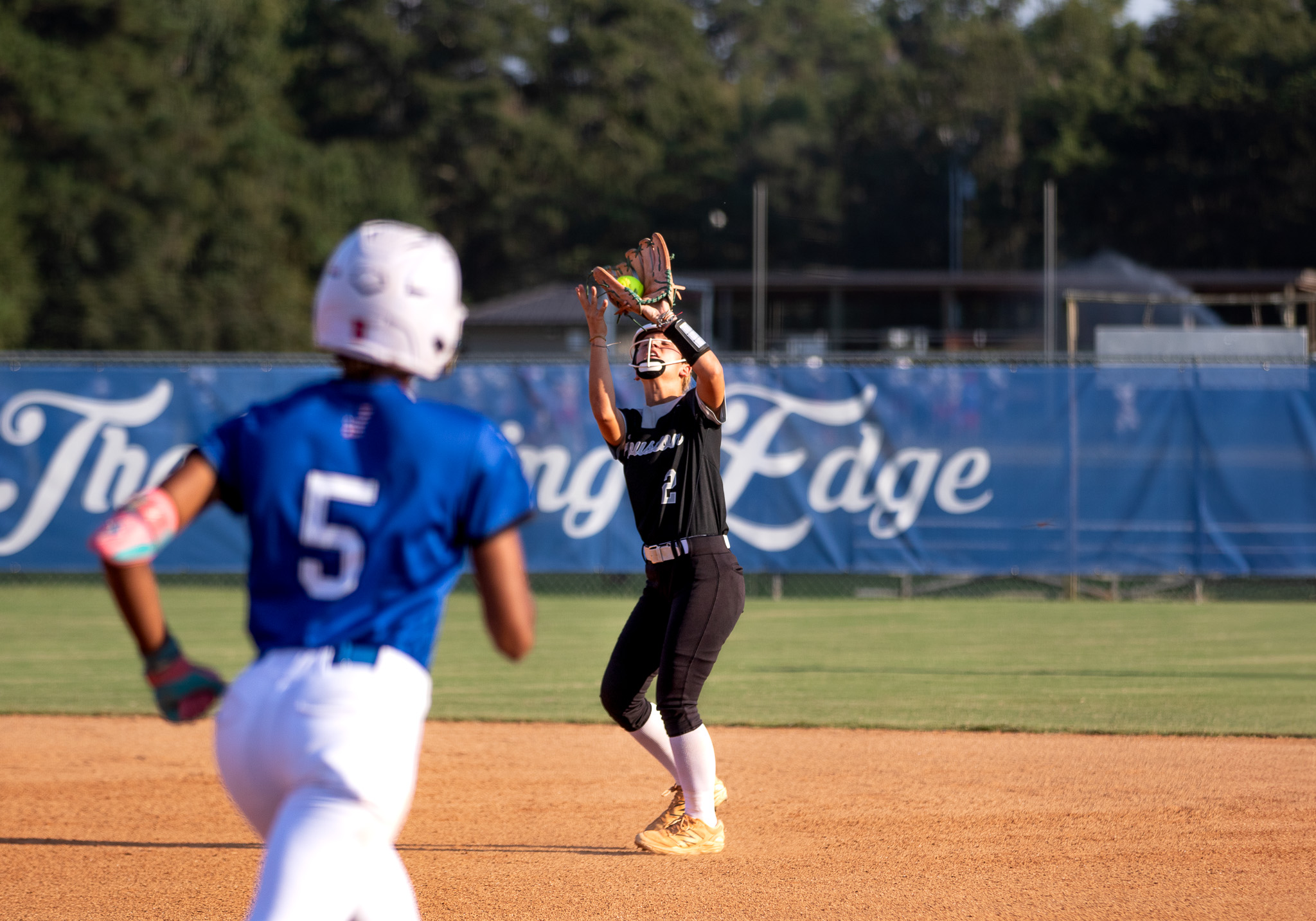 Houston County second baseman Lily Brzezicki (2) steps under Rayven Hodridge’s (5) infield pop up for an easy out. (Clay Brown/HHJ)
