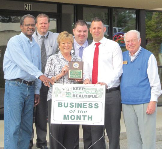 Keep Warner Robins Beautiful (KWRB) recognized Procom Wireless with the Business of the Month Award. Pictured presenting the award is Willice Walters (KWRB). Also pictured (left to right) are Arthur Head (KWRB), Brian Bennett, John Heeger, Brant Smith and Jack Steed (KWRB).