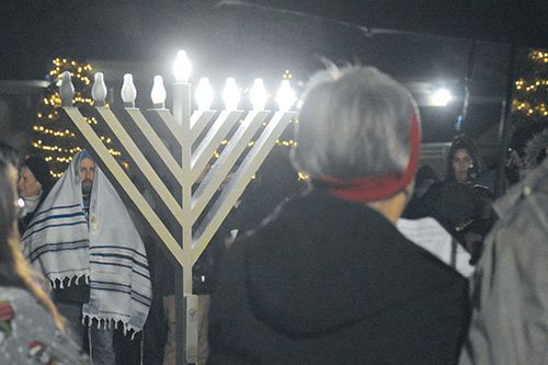 Ethan Hutten spoke first to the crowd circling the menorah. He has lived in Perry for 20 years, and was thrilled to see the community come together.