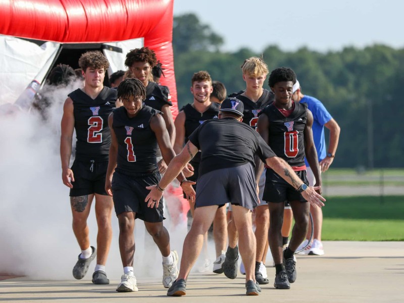 Veterans football fans met not just the freshman and varsity football teams, but also the band and cheer members that will accompany them this season.