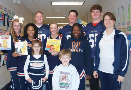 Northside High football players and varsity cheerleaders read to students at Quail Run Elementary in February. This is the eighth year in a row that Northside students have read to Quail Run’s children. First grade teacher Jan Moore arranges the annual activity. “The players and cheerleaders represent excellent role models for our children. They not only read to the kids, but they talk to them about the importance of working hard and trying your best in school.”