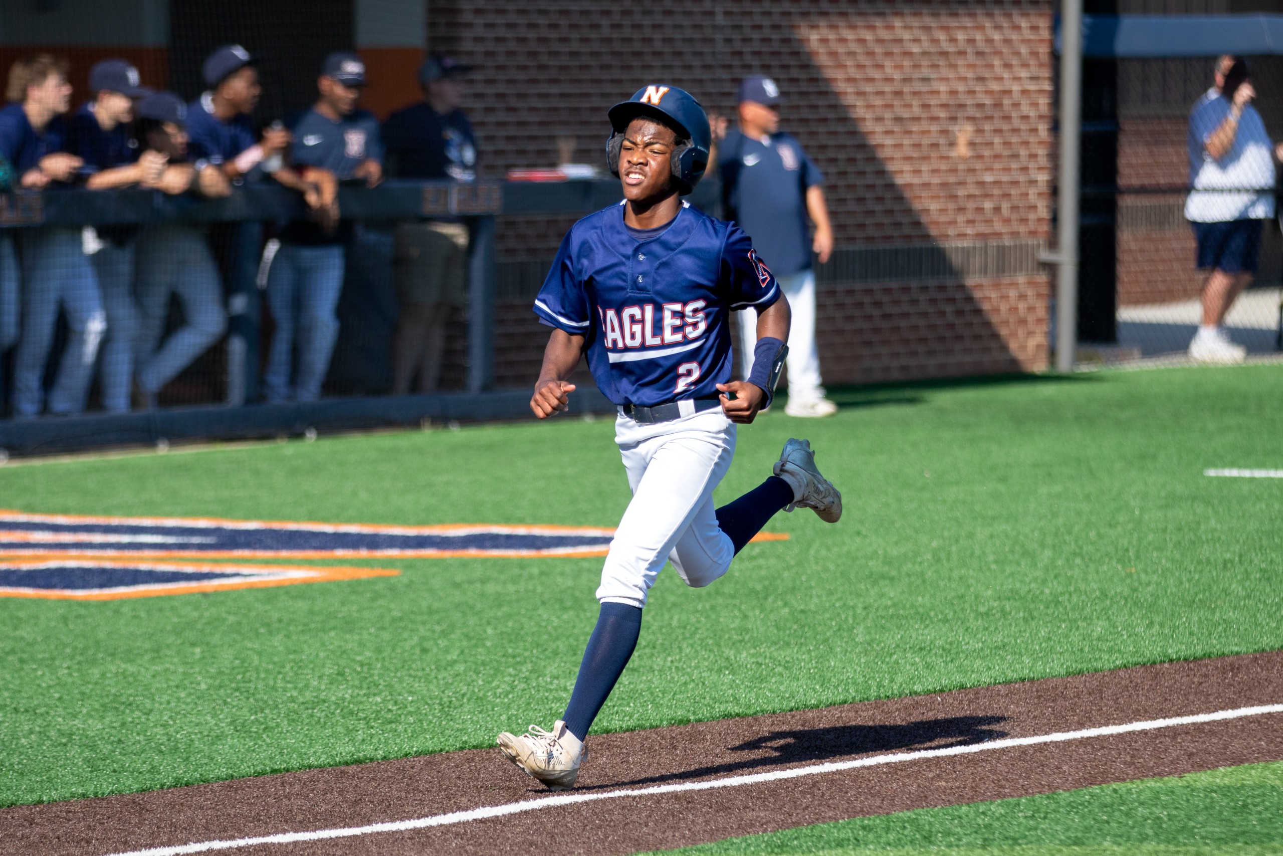 Eagles freshman Jeremy Snelling bolts to home plate during the first inning of a non-region game against Hawkinsville. (Clay Brown/HHJ)