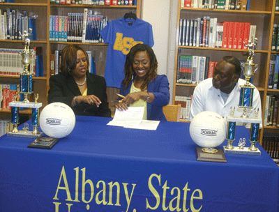 She also plays a little volleyball and basketball, and it’s in that former sport that Thompson was one hot recruiting prospect. On Friday, Thompson was surrounded by teammates, family and coaches for a signing ceremony that made her a member of the Albany State program beginning in the fall of 2013.