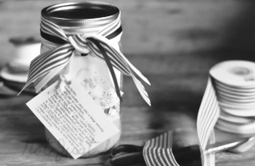 An assembly line works best whether you make the jars alone or have help from family and friends. Just have your jars ready with stations for each ingredient. Make sure you pack down each layer and finish off your jars with some pretty ribbon, and remember to attach the directions.