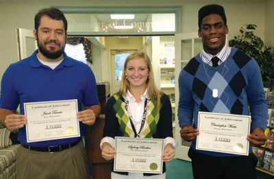The Perry Area Chamber of Commerce announced the Students of the Month for September. The recipients, Sydney Barker, Jacob Turner and Christopher Watts, were presented the award on Sept. 26 at the Chamber Office with their principals, family, and friends in attendance along with 2013 Chamber Chair Beth McLaughlin, members of the Board of Directors, and President/CEO Stacy Campbell.