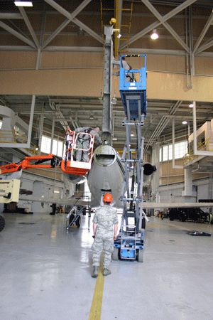 Members of the 116th and the 461st Aero Repair Shop are removing the tail section of the Gulfstream G-2 jet that John Travolta donated to the Georgia Aviation Hall of Fame. The Hall of Fame is located at the Museum of Aviation. The jet is scheduled to be moved down Hwy. 247 in May.