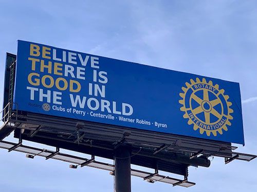 Rotary club members from the Byron, Centerville, Perry and Warner Robins clubs came together on Monday to unveil two recently installed billboards with the message “Believe There is Good in the World.”