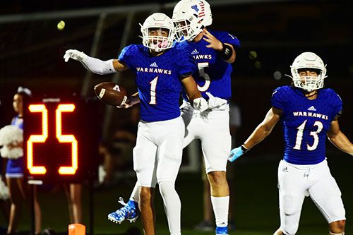 Ethridge, Fields, and receiver, Justin McCarty, the usual suspects, powered Veterans in the win against Perry. Fields racked up 160 yards of total offense, and McCarty finished with four catches for 98 yards and a touchdown. Kicker, Daniel Gibbs, also knocked in a 48-yard field goal and hasn’t missed a PAT yet this season.