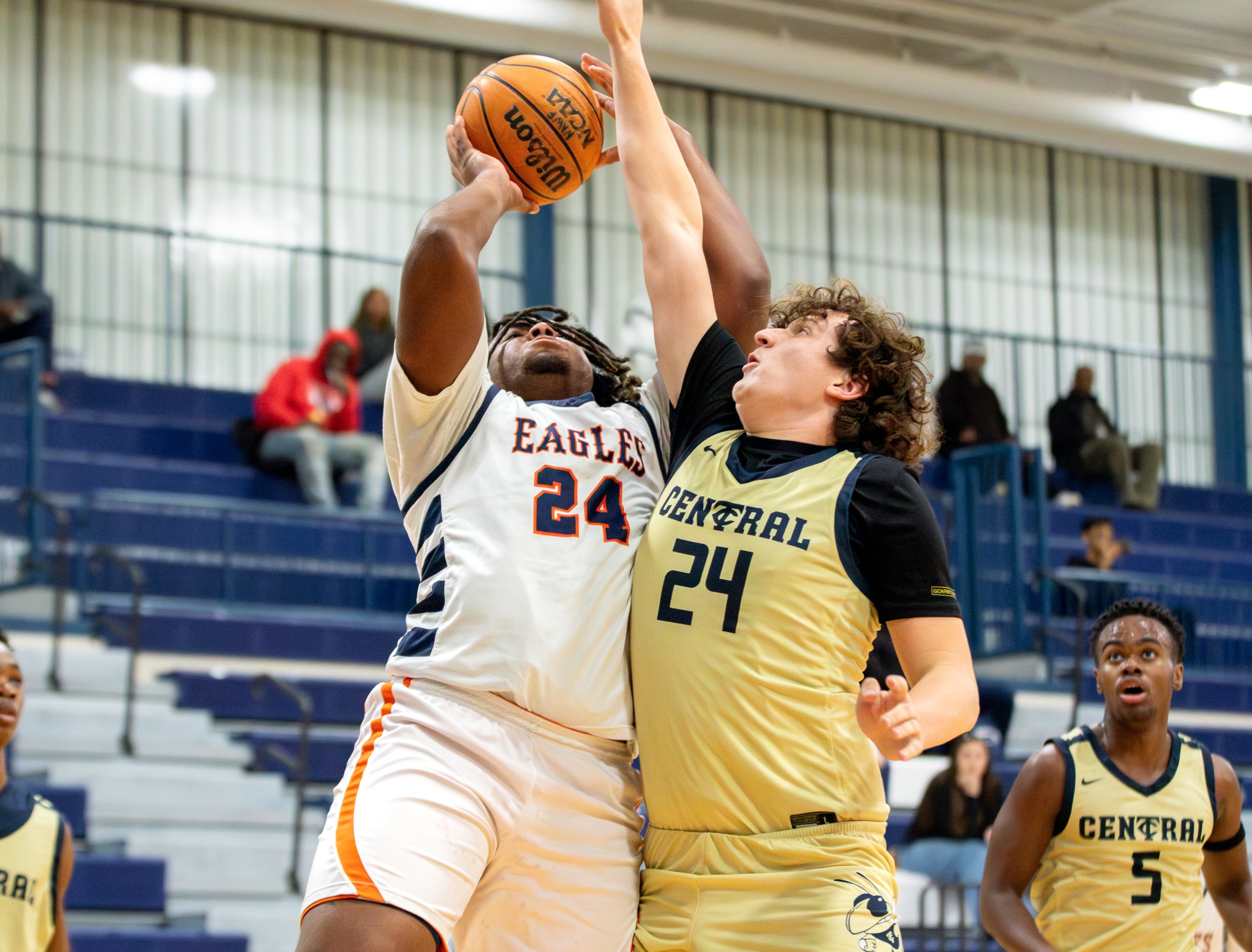 Patmon muscled his way to a team-high 16 points. He posted up but also caught several passes leading him to the rim as Thomas County Central fronted him in hopes of denying the ball. The Eagles also found a lot of success driving to the basket.