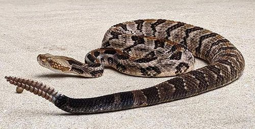 The Georgia Wildlife website provides a fact-sheet that states as many as half of all bites by venomous snakes are mild or “dry” bites in which little or no venom is injected. Out of 10,000 snakebites in the U.S. per year, 12 to 15 of them result in death. This equates to a survival chance of 499 out of 500. Regarding the timber rattlesnake in particular, the fact-sheet defines the snake as “passive if not pestered, rarely attacking if you back away and leave it alone.”