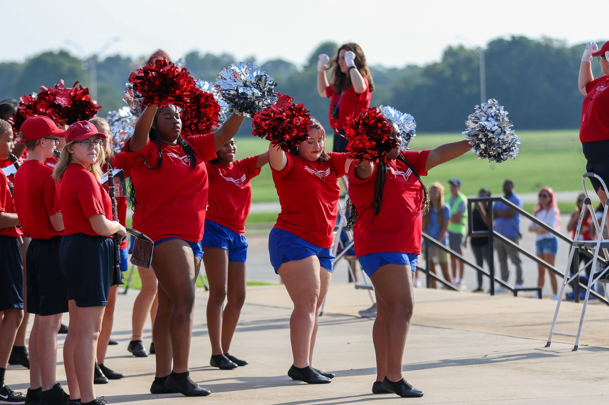 Veterans football fans met not just the freshman and varsity football teams, but also the band and cheer members that will accompany them this season.