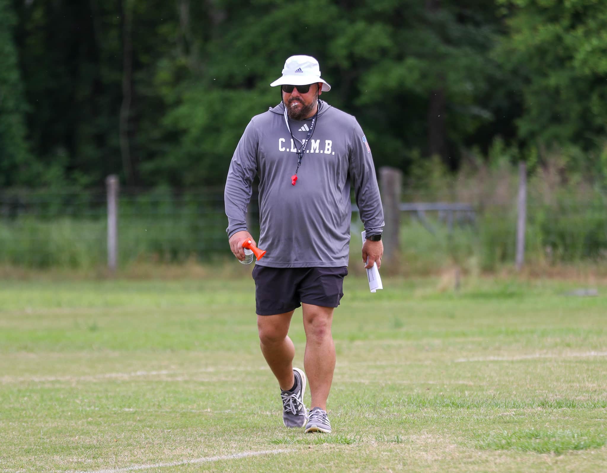 Veterans head coach Josh Ingram patrols the practice field. (Clay Brown/HHJ)