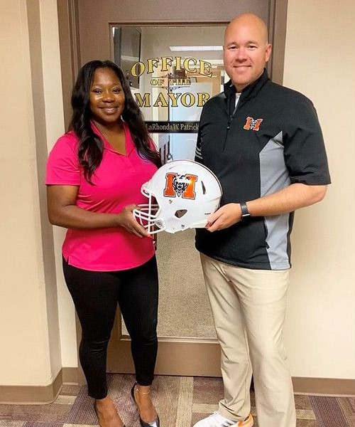 “I coined the head referee. So I gave him one of our city coins and a handshake,” Patrick said. “After I exited the field so they could start the game, I found the head coach for Mercer Bears and I also coined him with the Warner Robins official coin. That felt really good to thank them both and to give them a little token from the City of Warner Robins.”