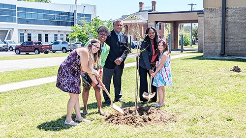 “These five young cherry blossoms that we’re adding today will add beauty to the landscape of city hall for many years to come,” Bowen said. “They will produce oxygen, and absorb pollutants. They will provide an important source of pollen and nectar for pollinators, and an early source for pollinators each year. The impact these trees will have will be felt for many generations to come.”