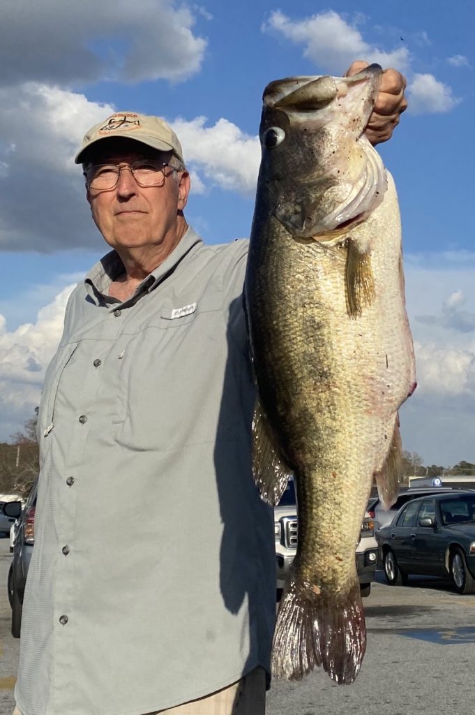 Years ago I was fishing with Charles Sloan at a private Wilcox County pond on a cold, damp February day. Charles had scoped out an underwater ditch and knew it held some big bass. Fishing with plastic worms, we boated three nice ones. Charles caught a nine and 11 pounder, while I pulled in a bass of about eight pounds. A pretty good day!